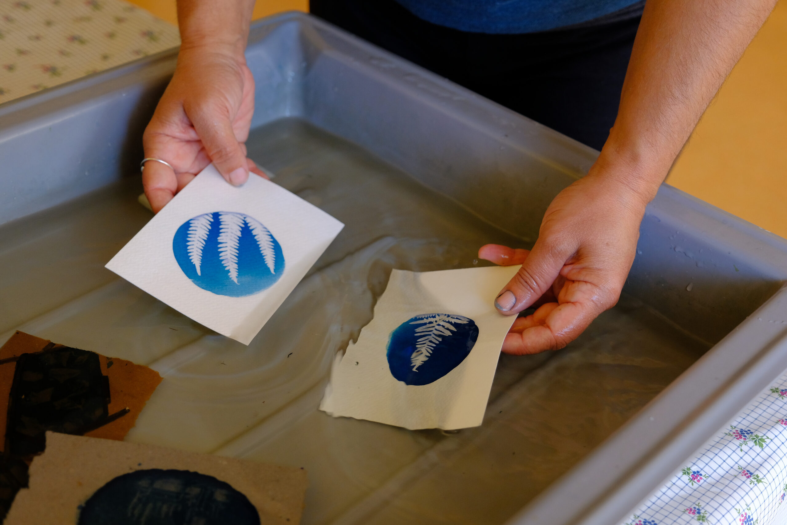 Sarah Alzieu | | 17 octobre 20246 novembre 2024 Cyanotypes au développement dans de l’eau – © Charles Crié / CCAS